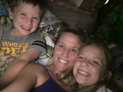 And poor guy was miserable with his pterodactyl bug bites he got while playing in the trees/bushes at Payton's softball game last night.